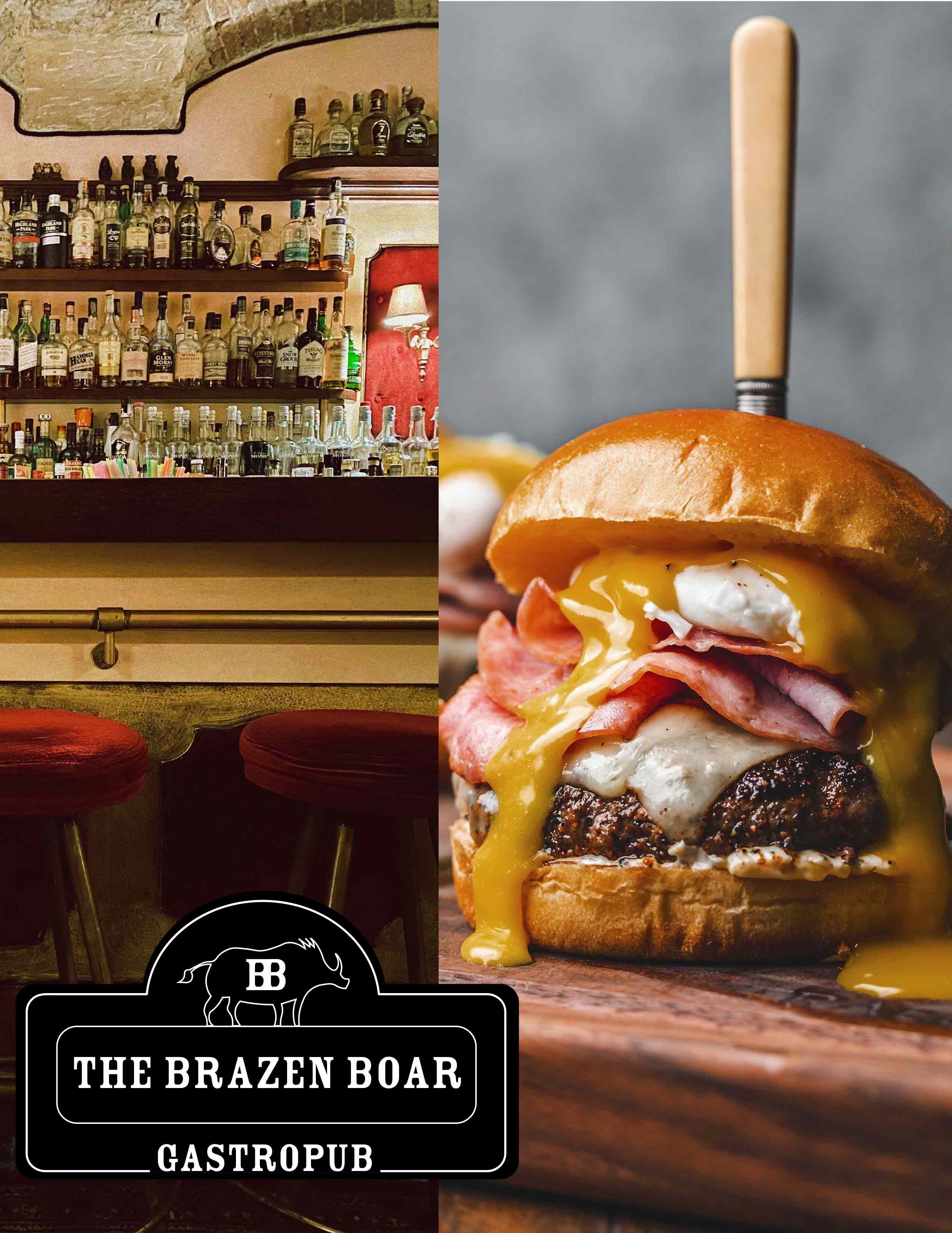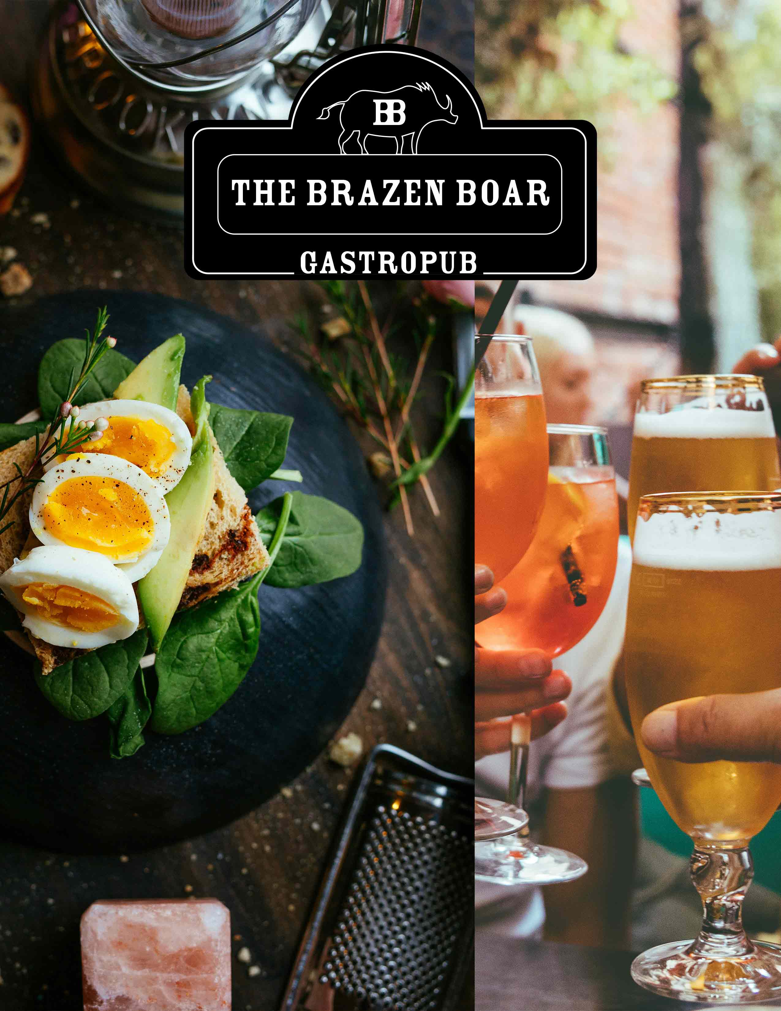 The goal was to create a warm, inviting atmosphere for The Brazen Boar—a modern, upscale gastropub; where the earth-toned color palette and bold typography set the perfect tone for a place to enjoy yourself.