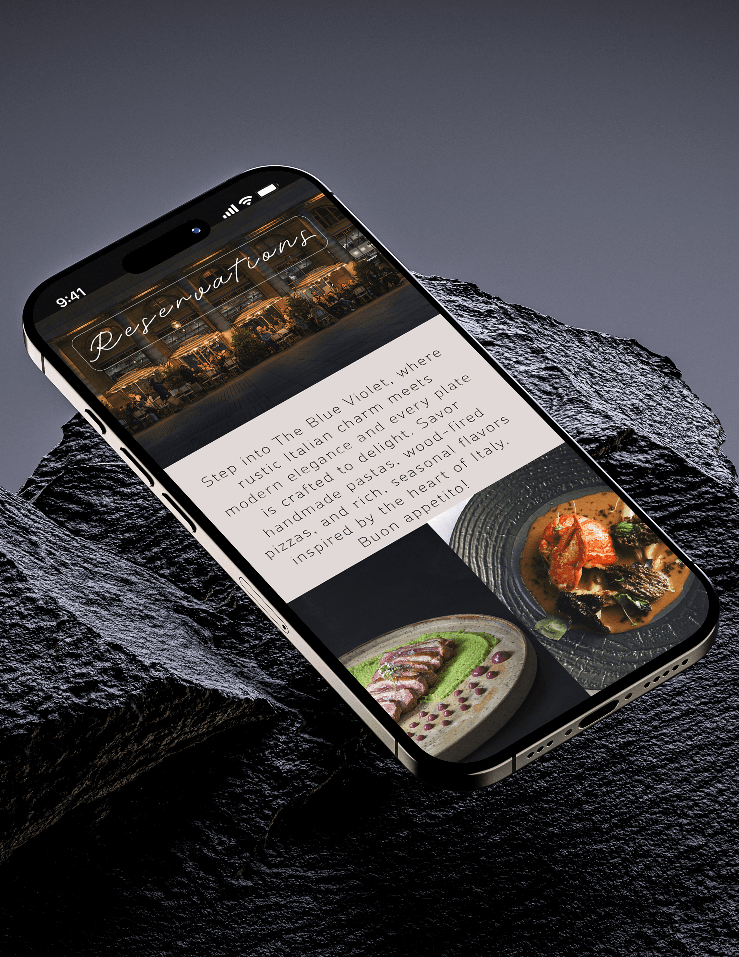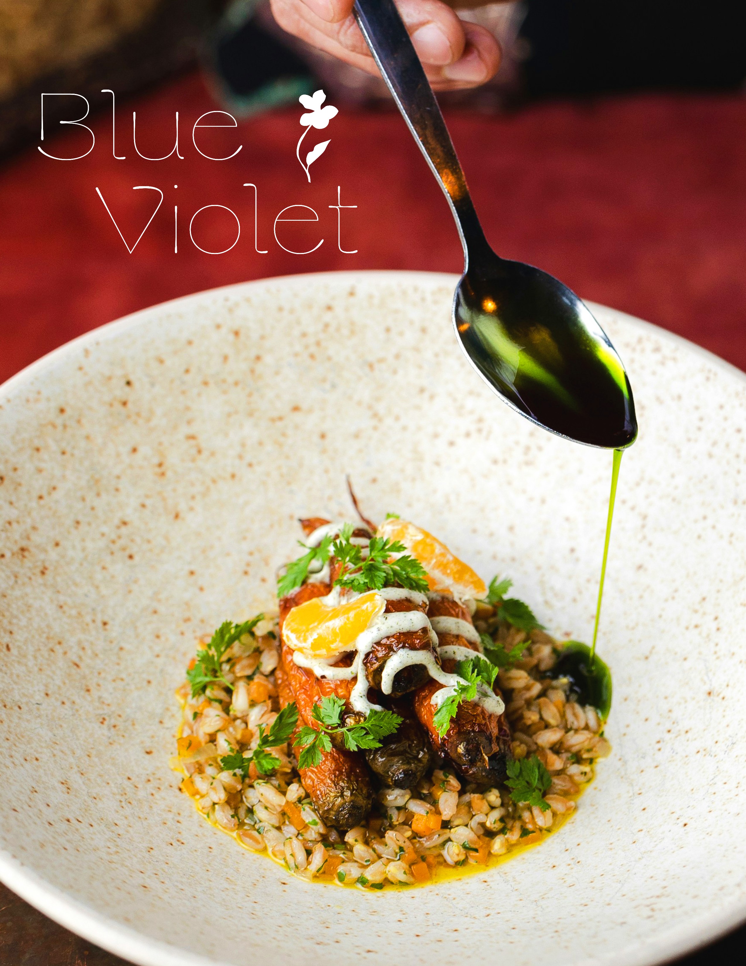 Blue Violet is an upscale farm-to-table restaurant concept that redefines fine dining . The brand captures the essence of refined simplicity— inviting guests into a space where elegance grows wild. (Scroll Right)